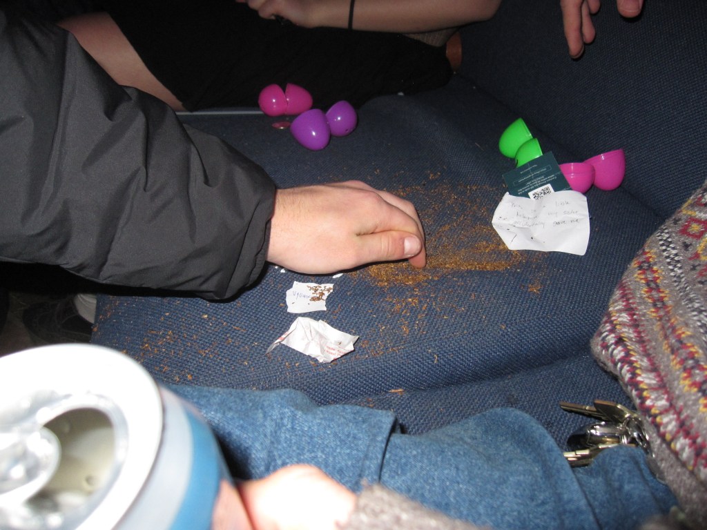 Pinch, twigs, cold beer and april.
